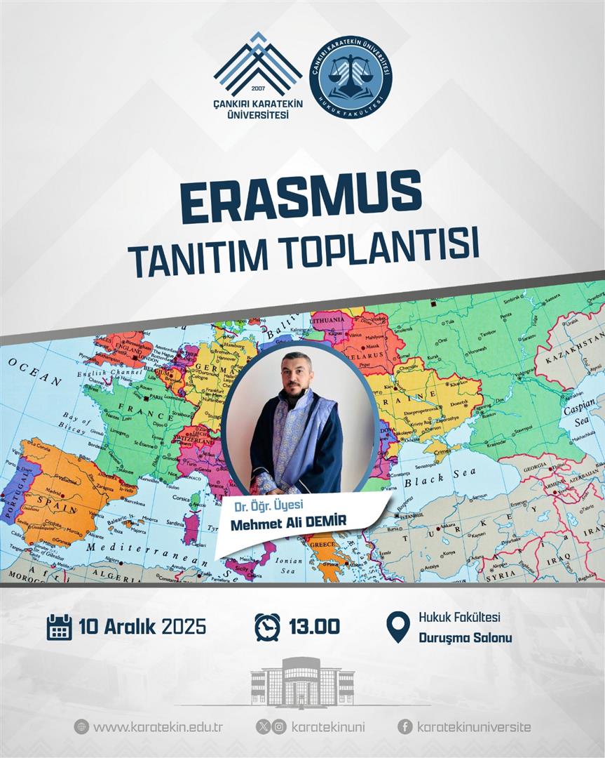 An Erasmus information meeting was held by Asst. Prof. Dr. Mehmet Ali Demir at the Faculty of Law Moot Court Hall on December 10, 2025.