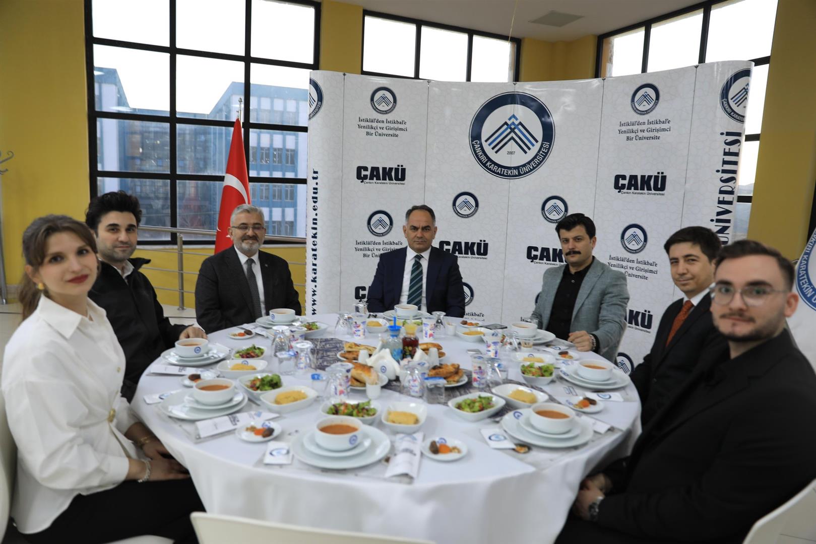 İftar soframızda; Çankırı Valisi Hüseyin Çakırtaş, Çankırı Cumhuriyet Başsavcısı Huzeyfe Yücedağ, öğrencilerimiz, akademisyenlerimiz ve sivil toplum kuruluşları temsilcileriyle bir araya geldik. İftar programının ardından Çankırı Valisi Hüseyin Çakırtaş ve Cumhuriyet Başsavcısı Huzeyfe Yücedağ, hukuk fakültesi öğrenci topluluklarımızın etkinliğinde öğrencilerimizle söyleşi gerçekleştirerek mesleki tecrübelerini paylaştı ve öğrencilerimizin sorularını yanıtladılar. Kıymetli katılımları ve tecrübe paylaşımları için kendilerine teşekkür ederiz.